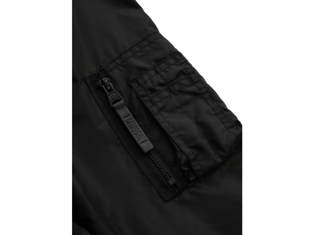 Pánská letní bunda Pitbull West Coast NIMITZ 2 černáLetní bunda ve střihu bomberu od Pitbull West Coast. Model NIMITZ 2 v černo černé barvě má sportovní vzhled je vyrobena z vysoce kvalitní nylonové tkaniny odolné proti dešti a větru. Uvnitř je tenká podšívka. Rukávy jsou ukončeny do širokých úpletových manžet, rovněž tak límec a spodní část bundy. Odnímatelná bavlněná kapuce. Bunda má dvě boční kapsy se zapínáním na patent, další kapsu na suchý zip naleznete uvnitř bundy a na levém rukávu. Na hrudi silikonový štítek značky pitbull. Po celé délce zad a na kapuci velký svislý potisk. Složení materiálu: vnější - 100% nylon / podšívka - 100% polyester
