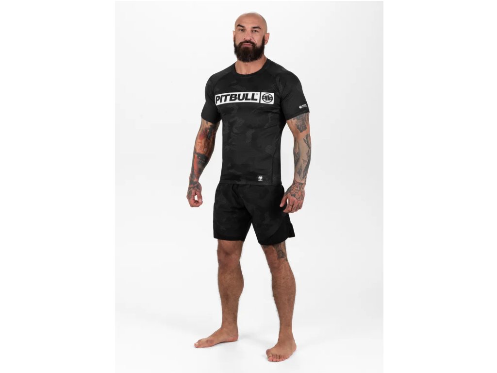 PitBull West Coast Rashguard Kr.rukáv Net Camo Hilltop II - černý - PWC_PRNETCAMOHLTII_BLK